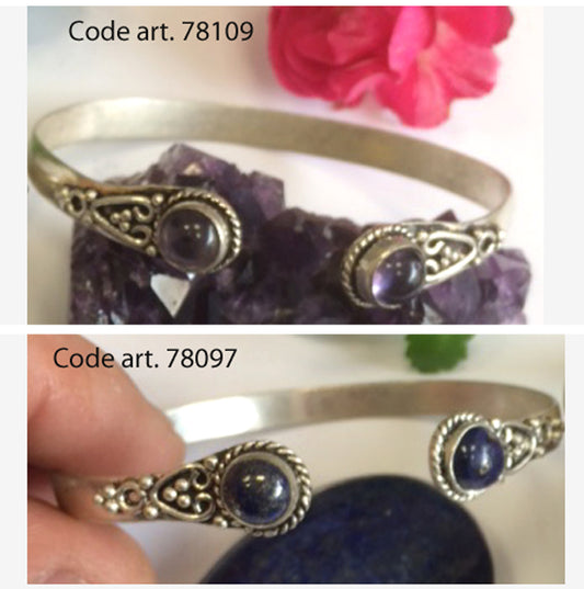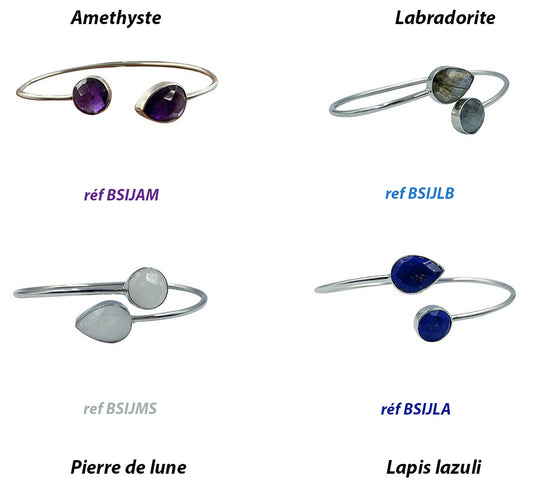 Collection de bracelets de type 'Jonc' en Argent 925 : Amethyste, Lapis, Labradorite, Pierre de Lune !