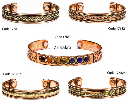 Sélection de bracelets 'Manchette' en cuivre – 5 modèles magnétiques au choix : gravure Fleur de Vie ou 7 Chakras – Fabrication indienne !