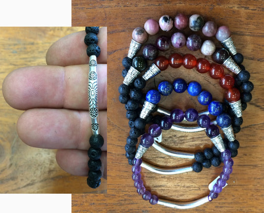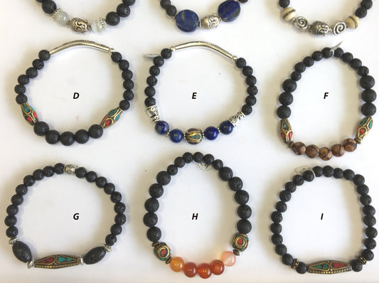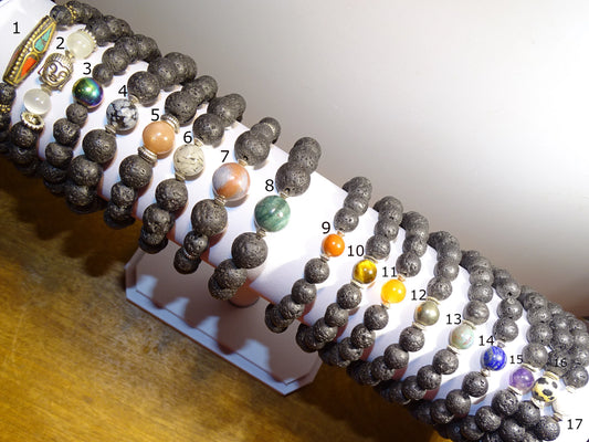 Bracelet Collection 'Ethnique', perles de lave 8 mm + 7 semi-précieuses, longueur 17-21 cm, fait main par Zen C° !
