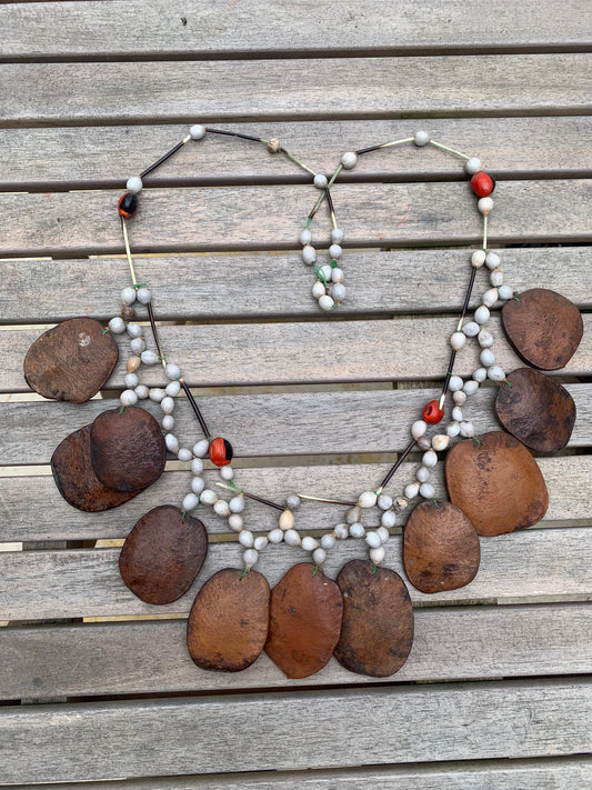 Collier du Pérou en graines naturelles, perles de ± 6 à 50 mm. Taille de 80/85 cm !