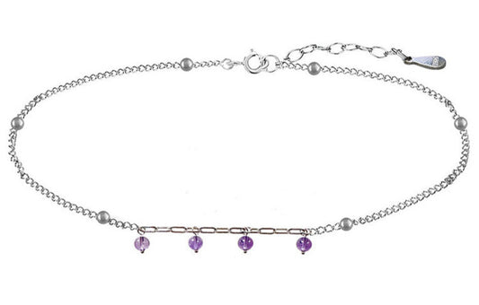 Bracelet de cheville en argent 925, 22 cm + rallonge 3 cm, décoré de 6 perles argent (2 mm) et 4 perles d’améthyste (4 mm) !