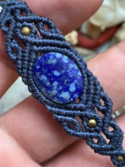 Bracelet fait main en coton tressé et pierre naturelle en lapis lazuli – Création unique Créatipik 🧵