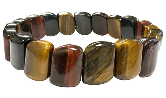 Bracelet en plaquette de pierre en œil de tigre, œil de taureau et œil de faucon. Dimension : Plaquette d'environ 1.3 à 1.5 centimètres. Monté sur élastique haute résistance !