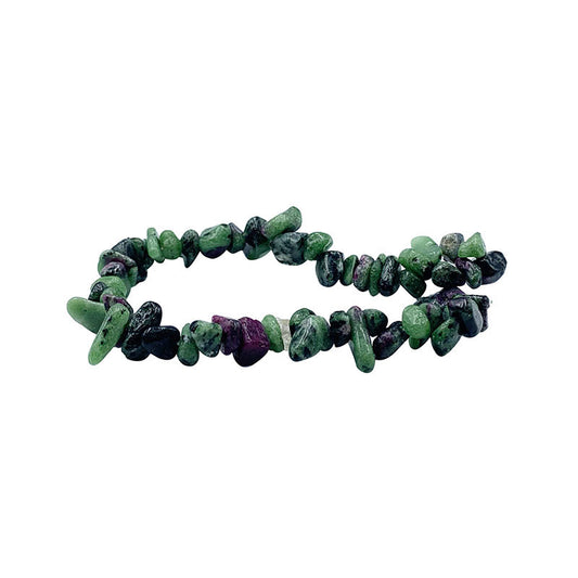 Rubis Zoïsite, bracelet de 17 à 21cm, collier de 42cm et sautoir de 60cm. Perles de type 'baroque/ chips' de formes naturelles montées sur fil élastique ou fil d'acier de haute résistance !