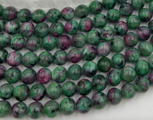 Rubis et Zoïsite qualité Extra, perles rondes de 6 ou 8 mm. Vendu en fil de perle 38/39 cm, en bracelet de 17 à 21cm, en collier de 45 ou sautoir de 60cm. Qualité AA à AAA, superbes perles natruelles d'Inde !