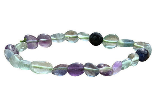 Fluorite multicolore, bracelet de 17 à 21 cm ou en collier de 42 cm ou sautoir de 85 cm. Perle de type 'baroque/ chips' de 4/7 millimètres, montées sur fil élastique ou fil d'acier de haute résistance !