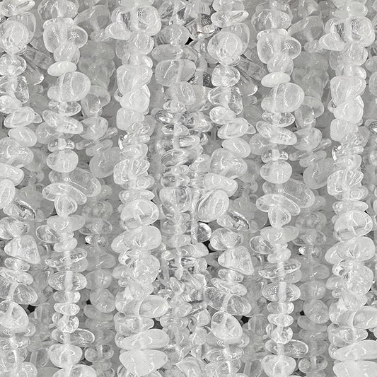 Cristal de roche/ quartz, bracelet de 17 à 21 cm ou en collier de 42 cm ou sautoir de 85 cm. Perle 'baroque/ chips' de 4/7 mm, montées sur fil élastique ou fil d'acier de haute résistance !