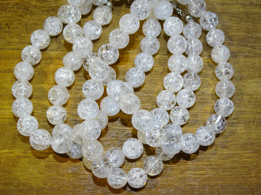 Cristal de roche 'Craquelé' ou 'Neige' (Quartz), perles rondes de 4, 6, 8, 10, 12, 14 mm. Vendu en fil de perle 38/39 cm, en bracelet de 17 à 21 cm, en collier de 45 ou sautoir de 60 cm !