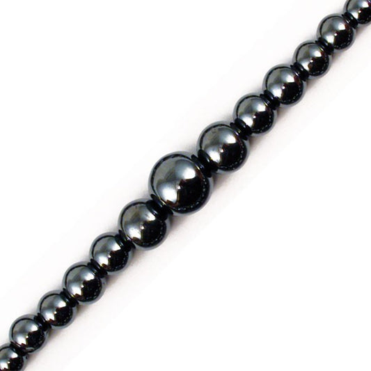 Hématite 'magnétique', perles rondes de 4, 6 ou 8 mm. Vendu en bracelet de 17 à 21 cm ou en collier de 45. Qualité AA à AAA, superbes perles, belle pureté, parfait !