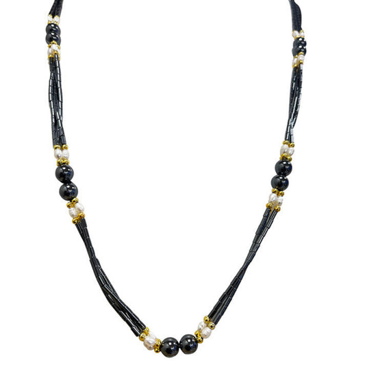 Hématite et perles biwa de 4 à 8 millimètres en collier de 70 cm - 3 finitions au choix pour le fermoir (Argent, laiton doré ou argenté) !