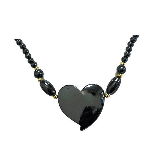 Hématite, collier avec pendentif en forme de 'Coeur' en perles rondes de 6 mm. 47 cm. 3 finitions au choix pour le fermoir !