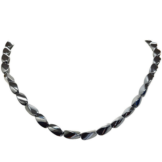 Hématite, perles 'Twist' de 6x8 mm, vendu en fil de perle, en bracelet de 17 à 21 cm, ou en collier de 42 cm. 3 finitions au choix pour le fermoir (Argent, maiton doré ou argenté) !