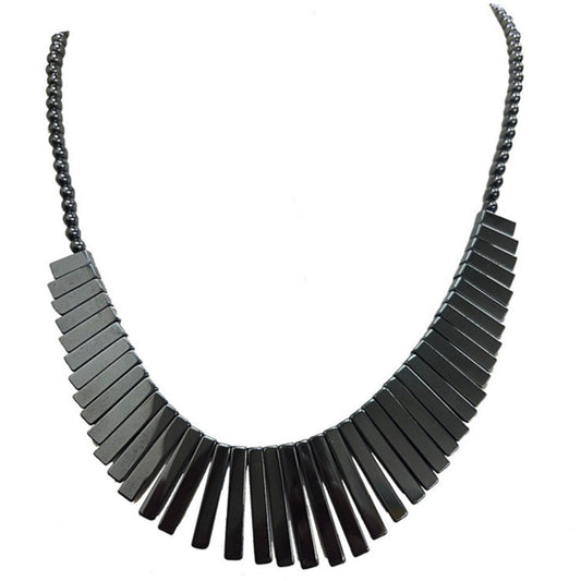 Hématite, collier 'Cléopâtre' en perles rondes de 6 mm avec panoramique de barrettes de 2 à 3 cm. 45 cm - 3 finitions au choix pour le fermoir Argent, laiton doré ou argenté !