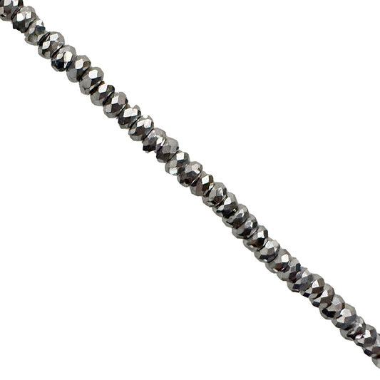 Hématite, perles 'facettées' de 2 x 1 millimètres, vendu en fil de perle, en bracelet de 17 à 21 cm, ou en collier de 42 cm. 3 finitions au choix pour le système de fermeture (Argent, plaqué or, argenté) !