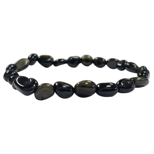 Obsidienne dorée, bracelet de 17 à 21cm, collier de 42cm et sautoir de 60cm. Perles de type 'Graine' de formes naturelles montées sur fil de haute résistance !