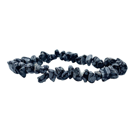 Obsidienne neige, bracelet de 17 à 21 cm ou en collier de 42 cm ou sautoir de 85 cm. Perle de type 'baroque/ chips' de 4/7 millimètres, montées sur fil élastique ou fil d'acier de haute résistance !