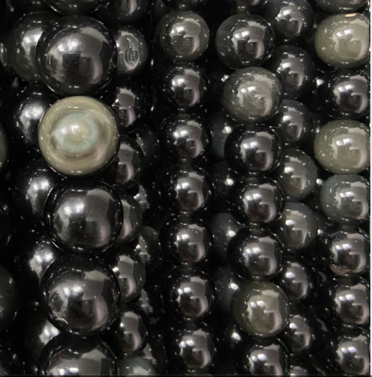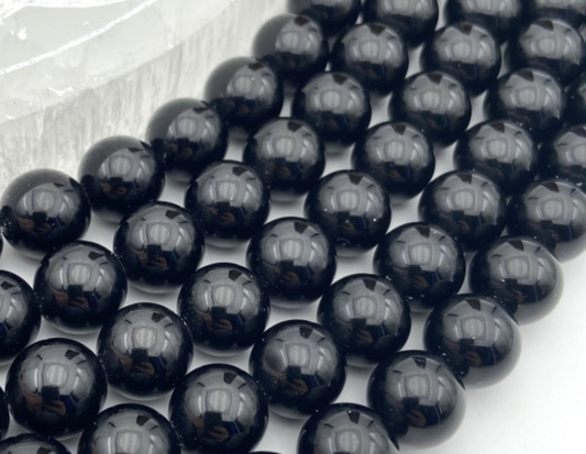 Obsidienne noire, perles rondes de 6, 8 ou 10 mm. Vendu en fil de perle 38/39 cm, en bracelet de 17 à 21cm, en collier de 45 ou sautoir de 60cm. Qualité AA à AAA, superbes perles, belle pureté, parfait !