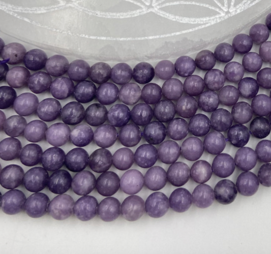 Lépidolite, perles rondes de 6 et 8 mm, vendu en : fil de perle 38/39 cm, en bracelet de 17 à 21cm, en collier de 45 ou sautoir de 60cm. Qualité AA à AAA, superbes perles naturelles !
