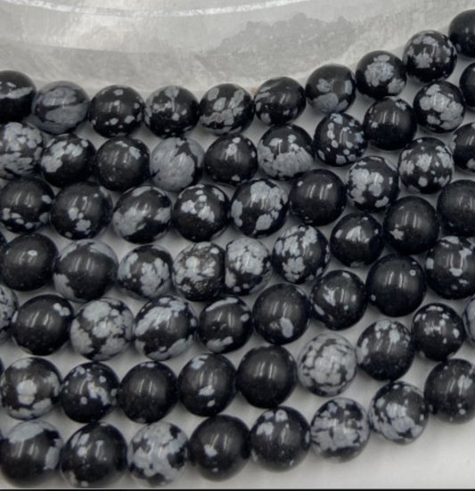 Obsidienne Flocon de Neige/ Mouchetée, perles rondes de 6 ou 8 mm. Vendu en fil de perle 38/39 cm, en bracelet de 17 à 21cm, en collier de 45 ou sautoir de 60cm. Qualité AA à AAA !