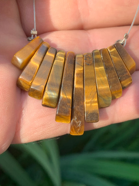 Oeil de tigre, collier/ pendentif de 42 cm. Perles de type 'Barette', montées sur fil d'acier gainé 'spéciale bijoux' !