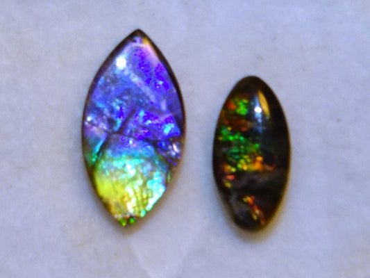 Ammolites 'véritables', 2 pièces au choix de 0,9x0,4x0,1 et 12x0,5x0,2 mm, magnifiques reflets multicolores, très belles pièces, parfait en bijouterie, collection ,exposition...