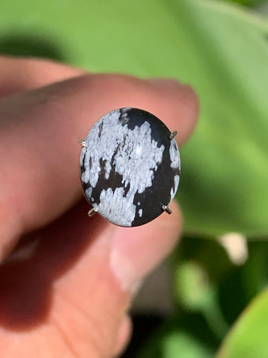 Obsidienne neige, cabochon de 13mm x11 x3 - 0,6 grammes/ 3 carats. Parfait en bijouterie, collection ,exposition...
