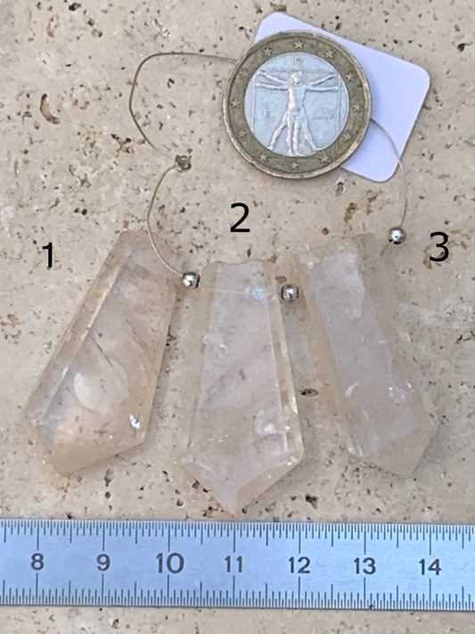 Morganite/ Beryl/ Emeraude rose, cristaux percés de 40mm x19 x8 et 8 grammes par pièce environ. Parfait en bijouterie, collection ,exposition...