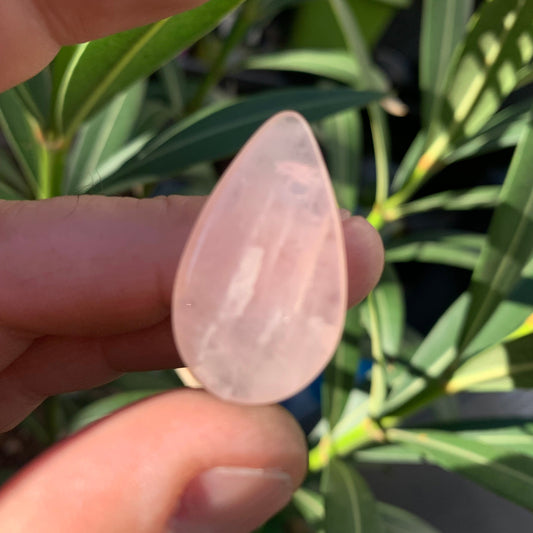 Quartz Rose, cabochon 'goutte', qualité A à AA, 30 x 20 x 8 mm environ, parfait pour la bijouterie, collection, lithothérapie...