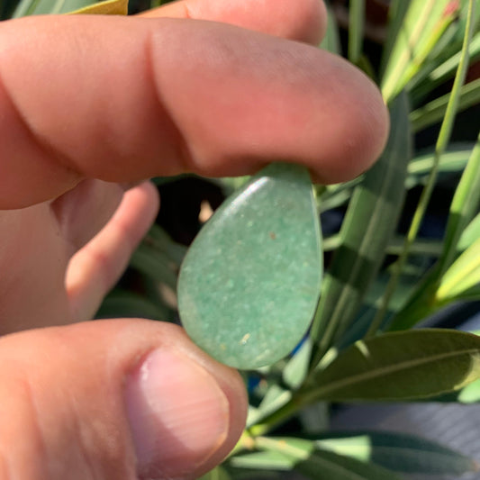 Quartz vert/ Aventurine, cabochon 'goutte', qualité A à AA, 30 x 20 x 8 mm environ, parfait pour la bijouterie, collection, lithothérapie...