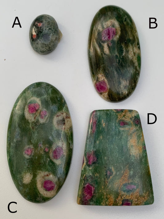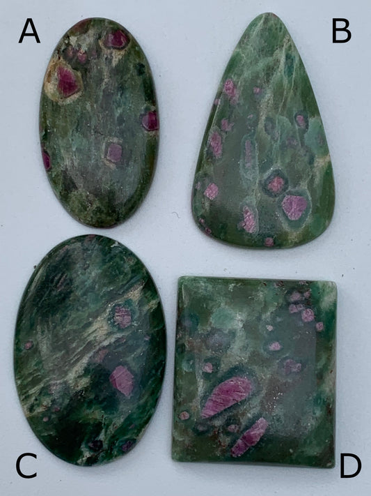 Rubis Fuchsite, cabochons au choix de 7,2 à 14,3 gr. - 37 à 42 mm. Parfait en collection, bijouterie, exposition...