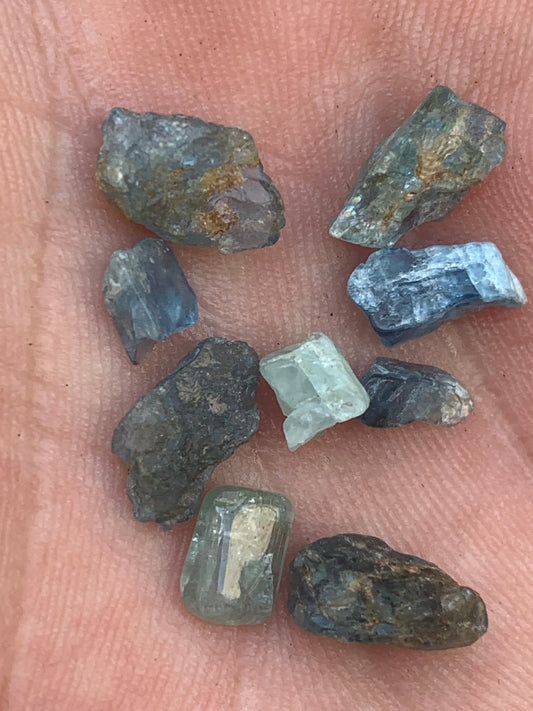 Saphir, lot de 9 pierres brutes, de 7mm x 4 x 3 environ - 2,2 grammes. Parfait en bijouterie, collection ,exposition...