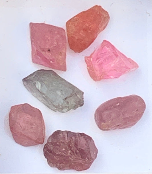 Spinelle, lot de 7 cristaux bruts de 5mm x4 x3 environ - 11,5 carats. Parfait en bijouterie, collection ,exposition...