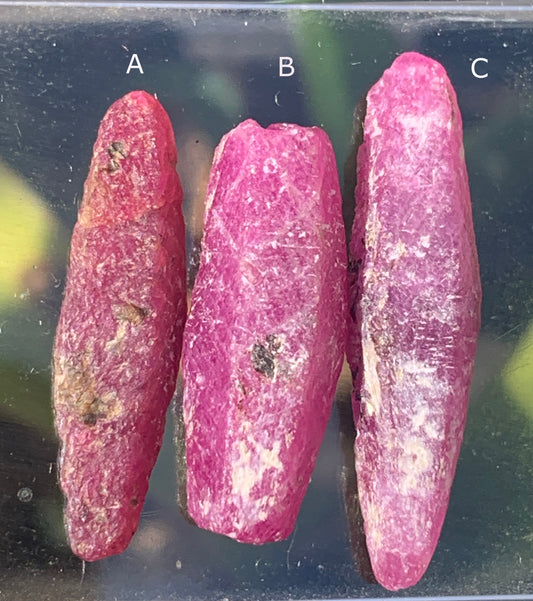 Rubis 'navette' de Mauritanie, cristaux bruts vendus a l'unité ou en lot, d'environ de 24x6x6 mm - 6,1 grammes (lot). Parfait en bijouterie, collection ,exposition...