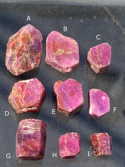 Rubis, cristaux bruts vendus a l'unité ou en lot, d'environ de 10mm x7 x 5 - 18,8 grammes (lot). Parfait en bijouterie, collection ,exposition...