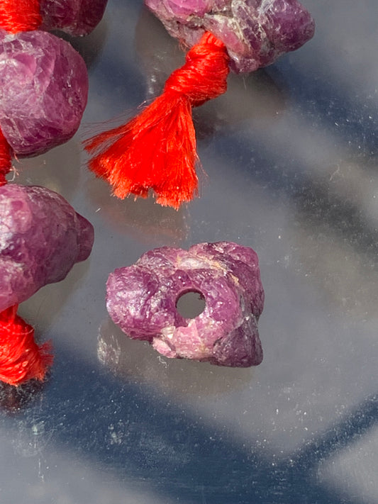Rubis, cristaux bruts percés vendus a l'unité ou en lot. Environ de 10mm x7 x 5 - 12,7 grammes (lot). Parfait en bijouterie, collection ,exposition...