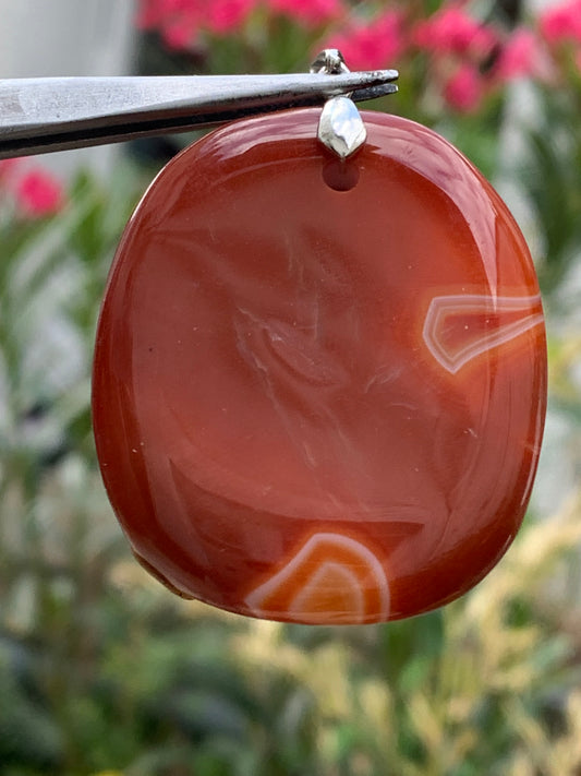 Cornaline, pendentif fait par Gem & Zen, de 32mm de hauteur x 24 de largeur x 8 d'épaisseur. Vendu avec cordon réglable de couleur noire !