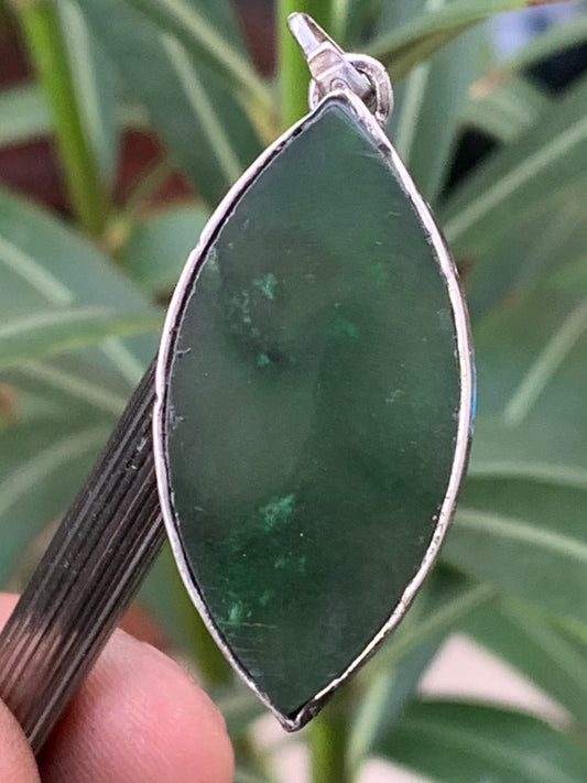Jade, pendentif en Argent fait par G & Z, 47 mm de hauteur x 20 de largeur x 6 d'épaisseur. Vendu avec cordon réglable de couleur noire.