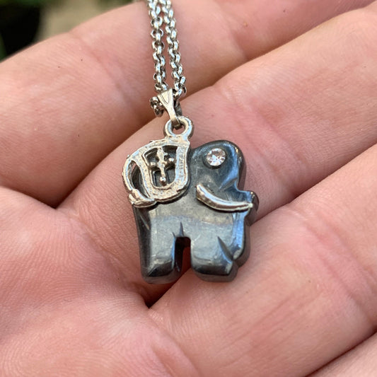 Hématite, pendentif 'Oursin avec Turquoise', de 30x27x8 millimètres - 2,9 gr. Vendu avec cordon noir réglable offert, parfait !endentif 'éléphant'et laiton argenté, de 21x11x5 millimètres - 4,8 gr. Vendu avec cordon noir réglable offert, parfait !