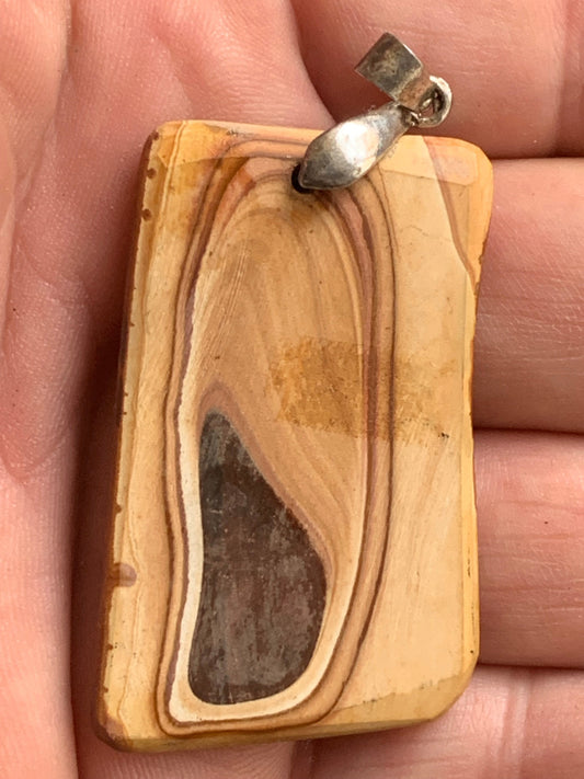 Jaspe orbiculaire, pendentif en Argent de 35mm de hauteur x15 de largeur x 5 d'épaisseur. Vendu avec cordon réglable !