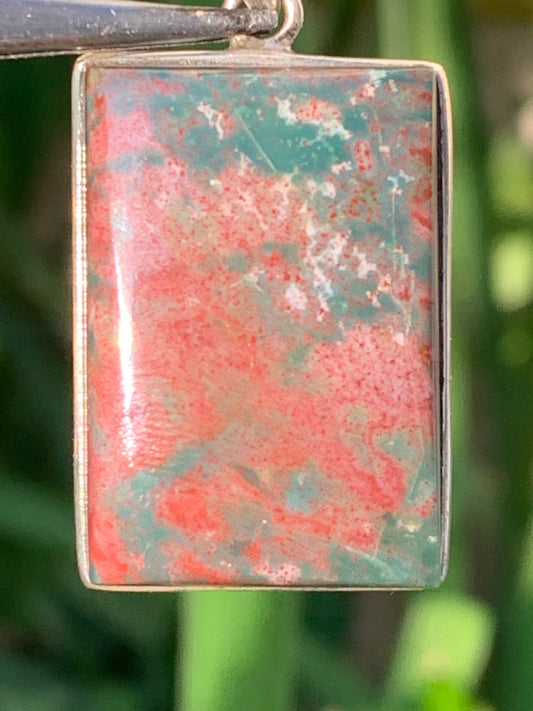 Jaspe héliotrope, pendentif en Argent de 41mm de hauteur x21 de largeur x 10 d'épaisseur. Vendu avec cordon réglable !