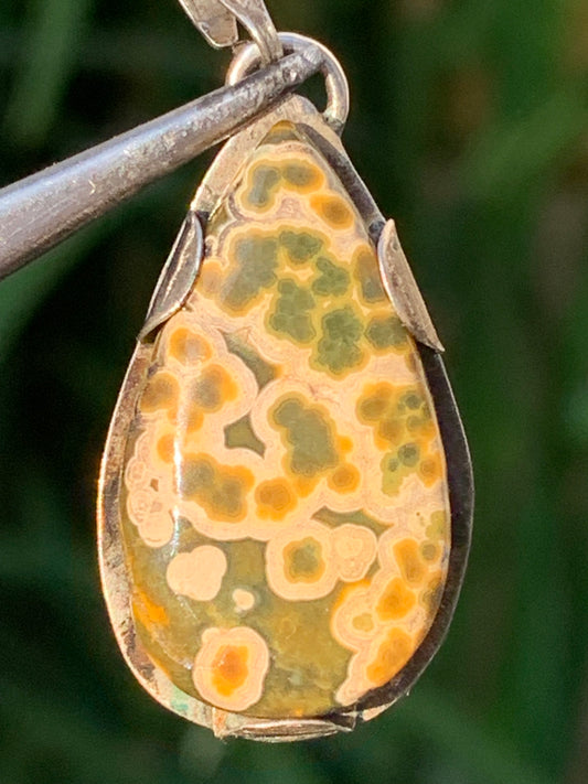 Jaspe orbiculaire, pendentif en Argent de 30mm de hauteur x24 de largeur x4 d'épaisseur. Vendu avec cordon réglable !