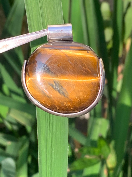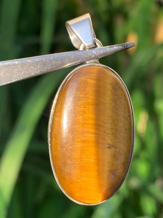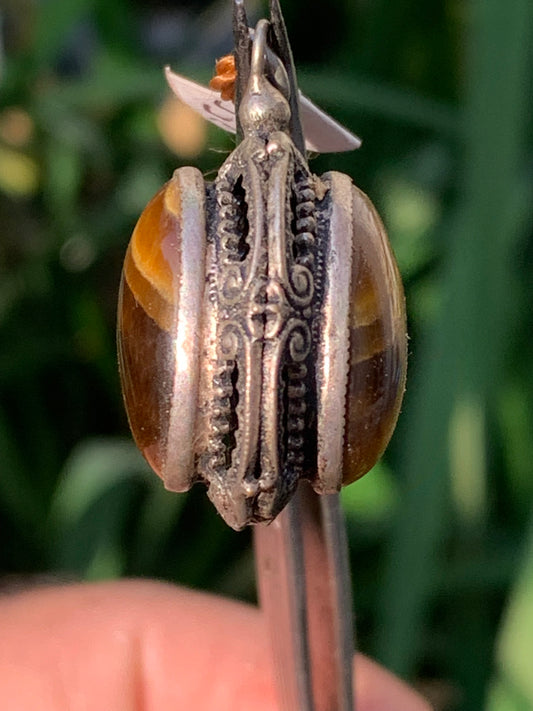 Oeil de tigre, pendentif en Argent de 42mm de hauteur x 20 de largeur x 8 d'épaisseur. Vendu avec cordon réglable !