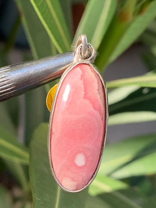 Rhodochrosite ! Pendentif en Argent de 35mm x15 x7 fait par Gem & Zen. Vendu avec un cordon réglable de couleur noire !