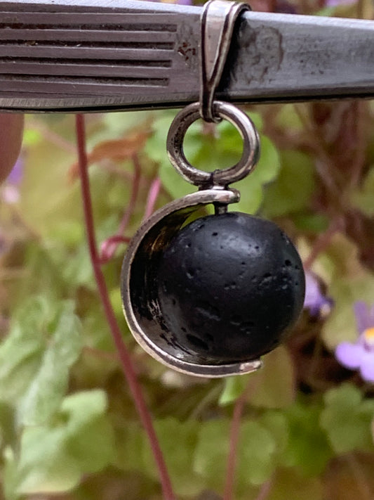 Pierre de lave, pendentif en Argent à la fois esthétique et fonctionnel utilisé pour la diffusion d’huiles essentielles grâce aux propriétés naturelles de la lave !
