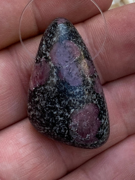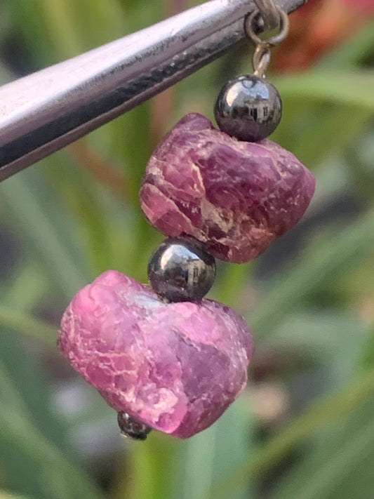 Rubis d'Inde, corindon naturel monté par G & Z, de 32 mm de ht x12 x10. Vendu avec un cordon réglable de couleur noire !