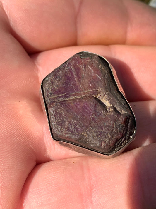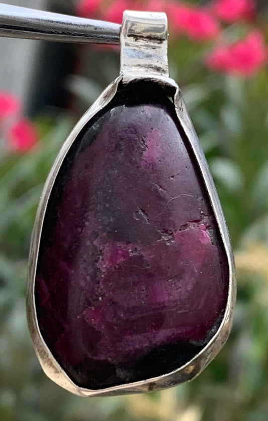 Rubis de tanzanie ! Corindon naturel serti sur Argent par G & Z, de 35 mm de ht x25 x11. Vendu avec un cordon réglable de couleur noire !