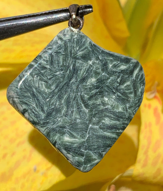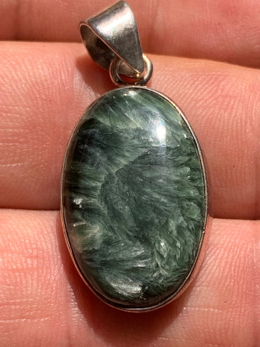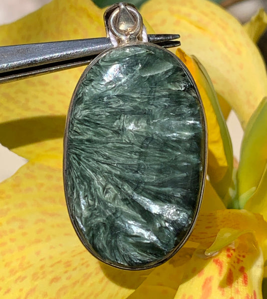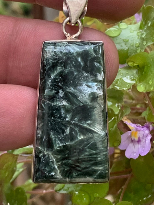 Séraphinite ! Pendentif en Argent 925 de 38mm de hauteur x 17 x 7. Vendu avec cordon réglable de couleur noire !