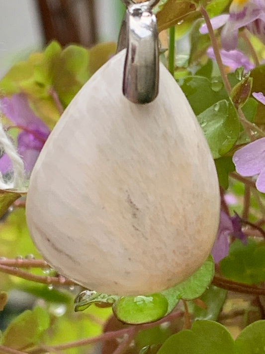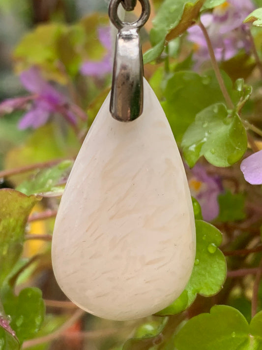 Scolecite (famille des zéolites), pendentif en Argent 925 de 45mm de hauteur x 17 de largeur x 5 d'épaisseur. Vendu avec cordon réglable de couleur noire !