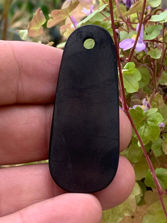 Shungite, pendentif de 53mm de hauteur x 22 de largeur x 15 d'épaisseur. Vendu avec cordon réglable de couleur noire offert !
