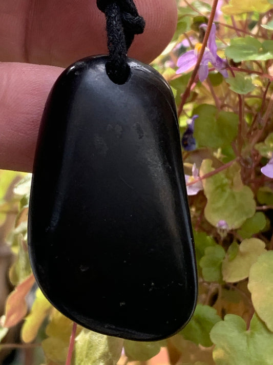 Shungite, pendentif de 48mm de hauteur x 25 de largeur x 12 d'épaisseur. Vendu avec son cordon réglable de couleur noire offert !
